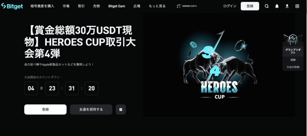 Bitget内の「HEROES CUP取引大会 第4弾」特設ページにアクセスし、