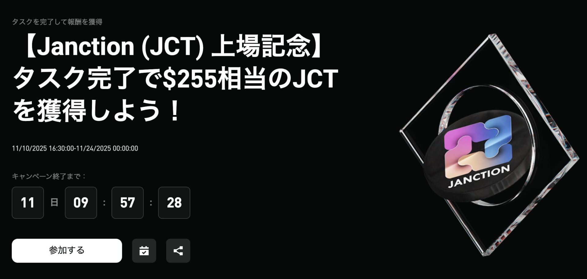 Janction (JCT) 上場記念キャンペーンが開催されています。