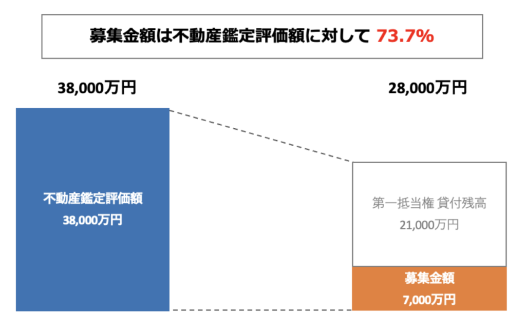 となっており、合計2億8,000万円は、不動産鑑定評価額の73.7% となります。