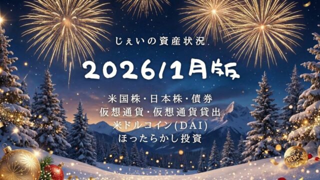 資産形成2026/1月!投資6年2ヶ月の資産状況!【じぇいの投資記録】 毎月、月初に更新しているじぇいの投資記録。2026/1月の最新版を大公開!2019/11月から開始した資産形成の履歴。米国株、日本株、仮想通貨、自動売買、ほったらかし投資の資産を公開。また現金含めた、じぇいの総資産も公開中! 2026.01.05資産形成