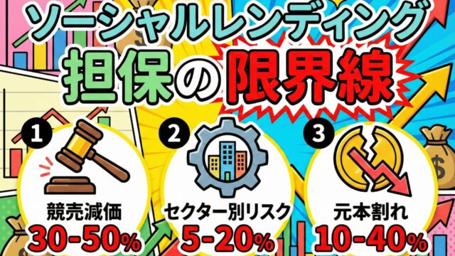 資産形成LTV80%は危険?ソーシャルレンディング担保の限界線|競売減価・セクター別リスク・元本割れを数字で解説 ソーシャルレンディングの不動産担保で「LTV80%」は本当に安全?担保余力20%が競売の減価・諸費用で消える条件を数式で整理。マンション/ホテル等セクター差と元本割れ確率の考え方を解説。 2026.01.13資産形成