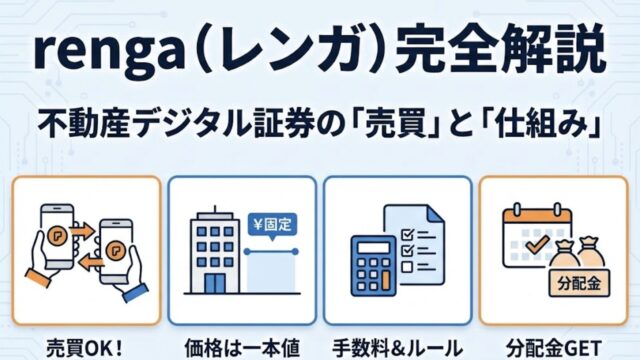 資産形成【renga】デジタル証券の売り方・買い方|投資家間売買の手順・手数料・売買基準価格・分配金ルールを完全解説 renga(レンガ)トークンの売り方・買い方を、投資家間売買の具体手順から手数料(媒介手数料)、売買基準価格の決まり方、分配金の権利確定(末日0時)まで公式情報ベースで網羅解説。 2026.01.31資産形成