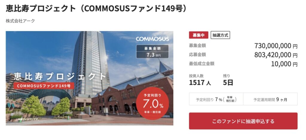 COMMOSUSの「恵比寿プロジェクト(COMMOSUSファンド149号)」は、