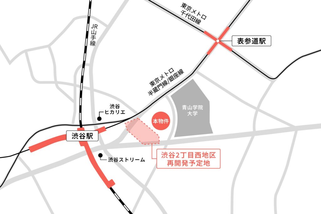 「渋谷」駅 徒歩9分、「表参道」駅 徒歩8分と、両駅へのアクセス性に優れたエリアに位置し、店舗・共同住宅として利用されている1棟ビルが投資対象。