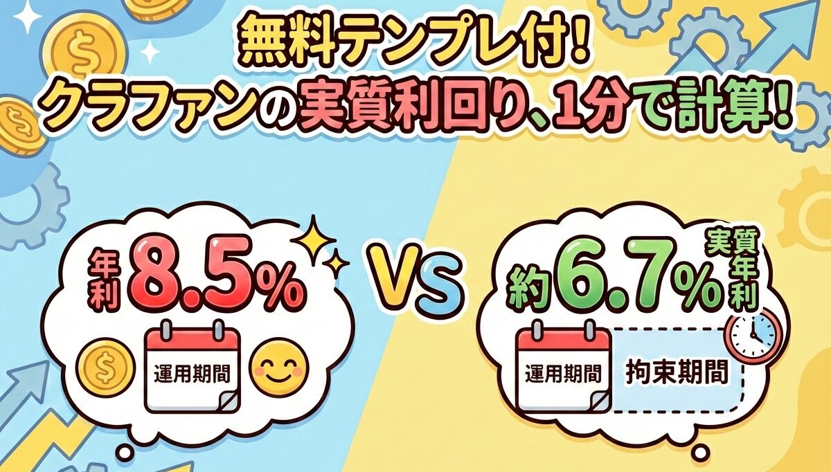 【無料テンプレ付】クラファンの実質利回りを1分で計算する方法|拘束期間込みで表示利回りを検証