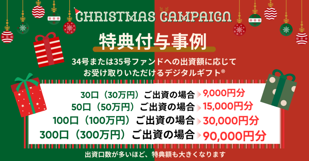 しかしほぼ全てのファンドで出資額に応じたアマギフキャンペーンが行われており、実質年利は8%~10%程度になることが多いです。