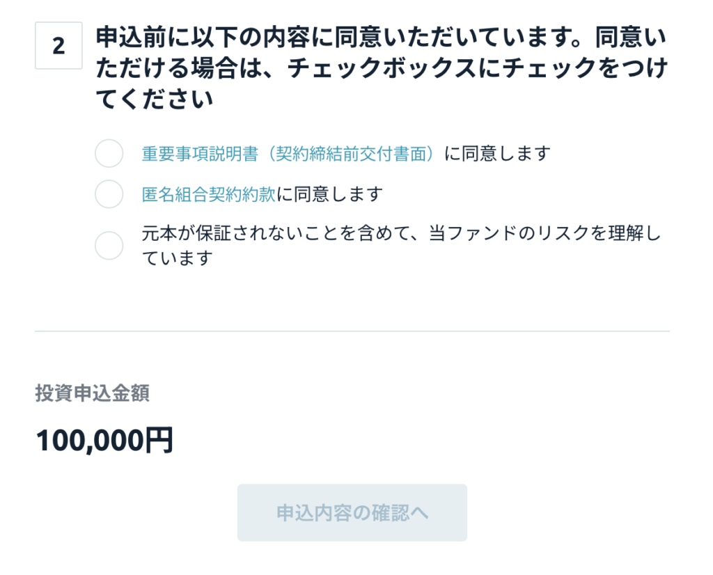ファンドページから申し込み金額を入力します。