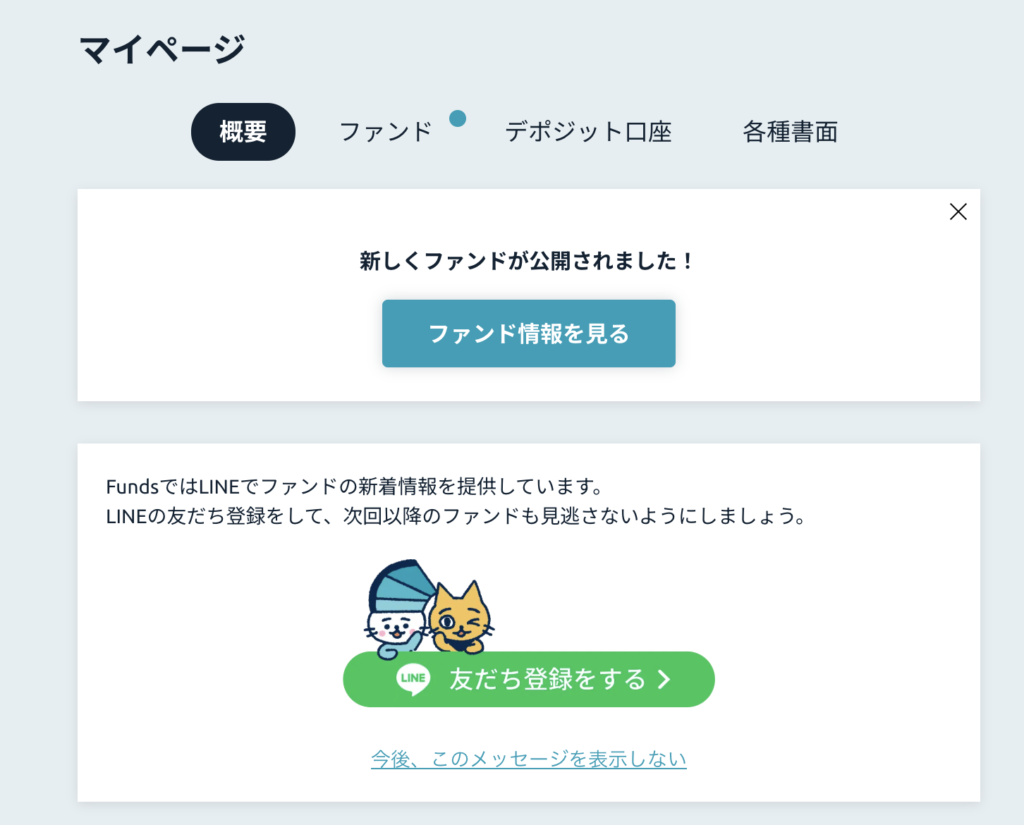 Fundsは案件数が比較的少なく、常に投資可能な案件があるわけではありません。