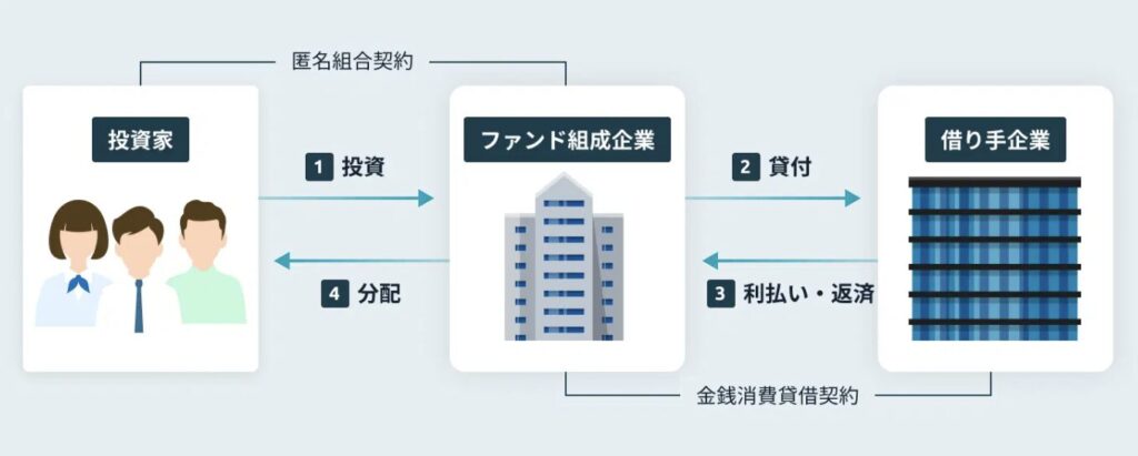 一般的な「ソーシャルレンディング」は、事業者に直接融資する仕組みが多いのに対し、Fundsは企業間融資(貸付ファンド)を投資家に小口化して提供するのが特徴です。
