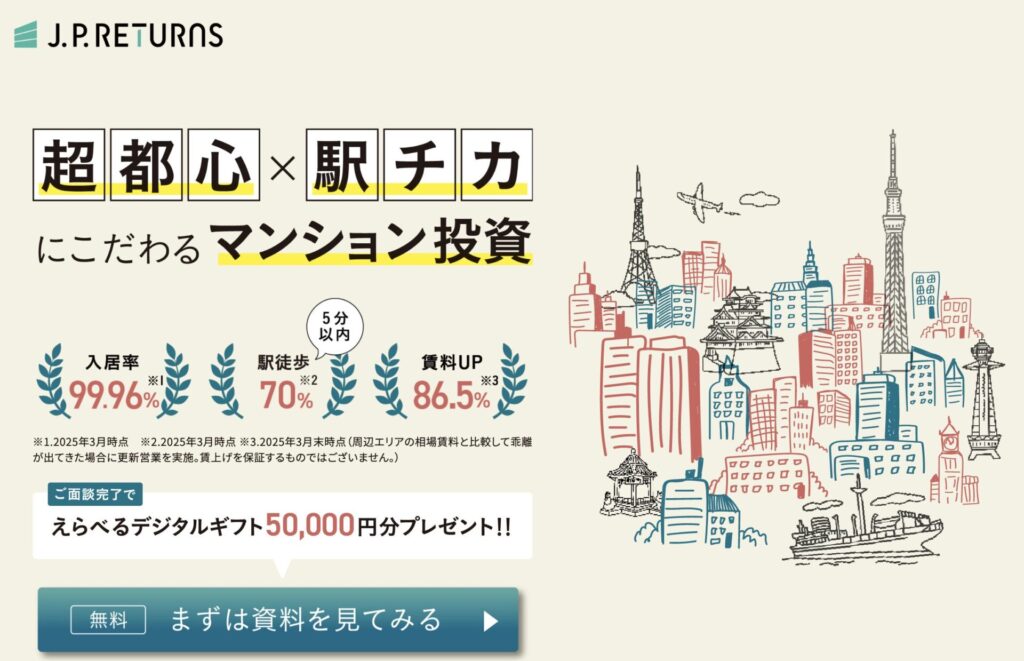 JPリターンズは平成14年11月に設立された不動産投資をサポートしてくれる会社です。