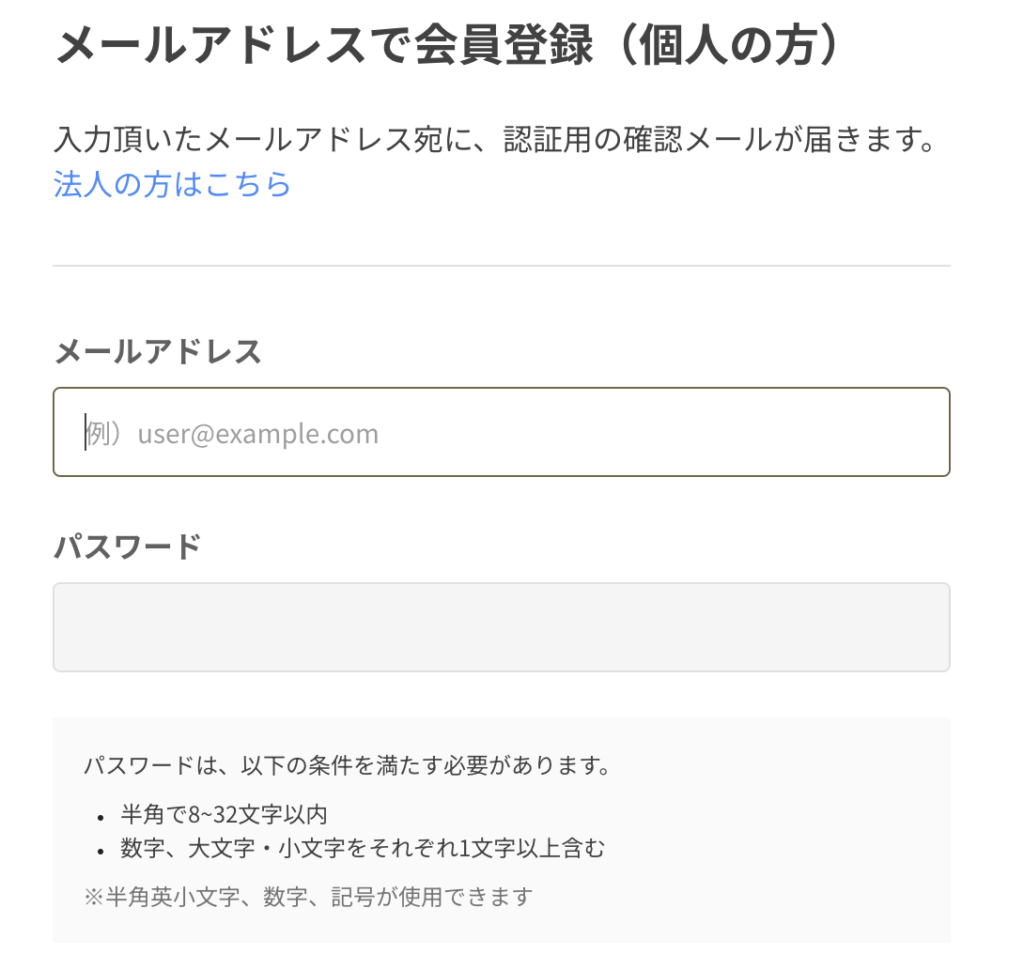 公式HPの無料会員登録からメールアドレスやパスワードをを設定して仮会員登録をしましょう!