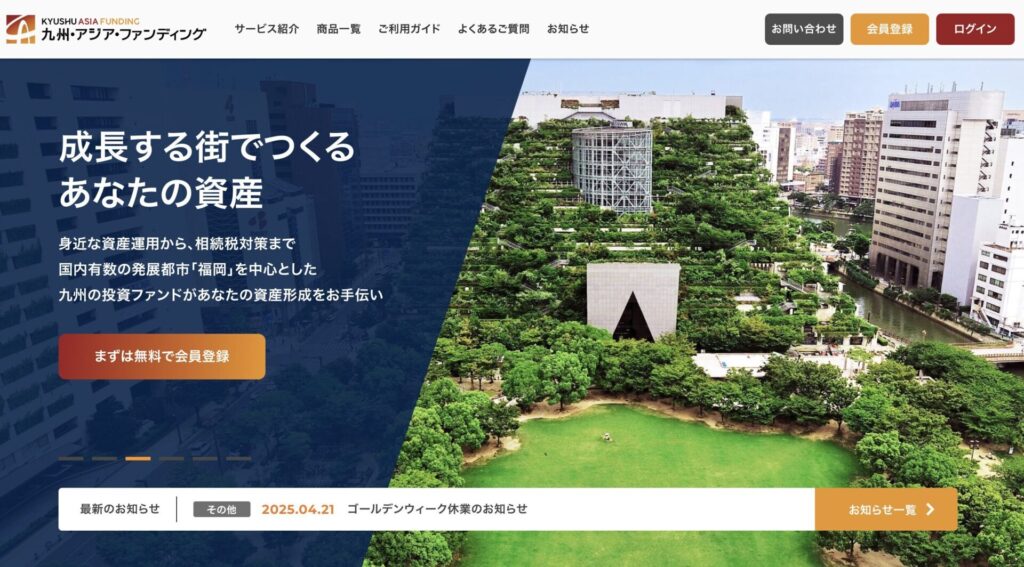 九州・アジア・ファンディングは、「福岡・九州エリアの不動産を小口で持てる」タイプの不動産クラファンです。