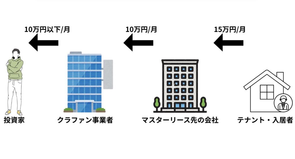 マスターリースとは「一括借り上げ」という意味で、マスターリース先の会社がクラファン事業者から物件を借り上げています。