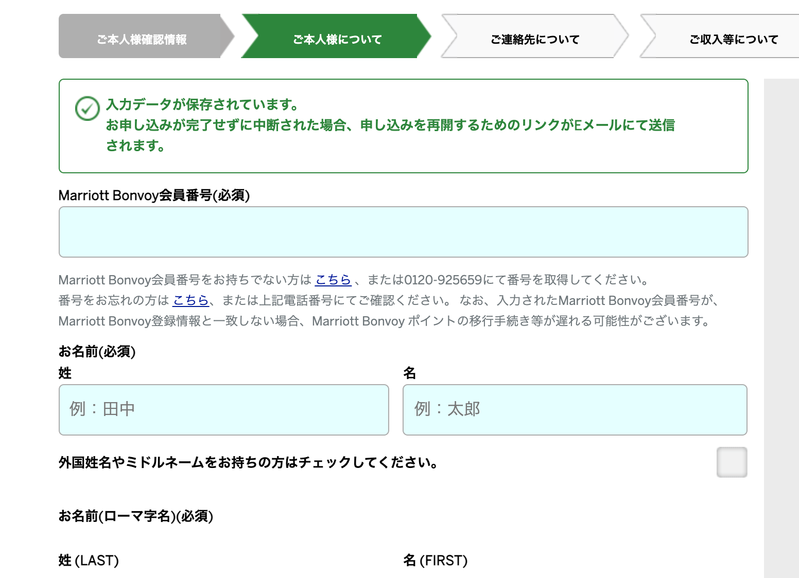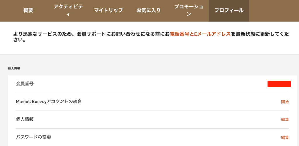 ここで「マリオット ボンヴォイ会員番号」が必要になります。