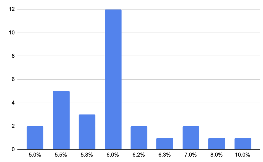 2025/11月時点では年利5%~10%で組成されており、基本的には6%前後の案件が多いイメージです。