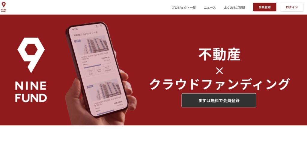 NINE FUNDは、短期案件・抽選中心・想定利回り高めの案件が並びやすいサービスです。登録しておくと、抽選に参加しやすくなり、当選後に落ち着いて判断できます。