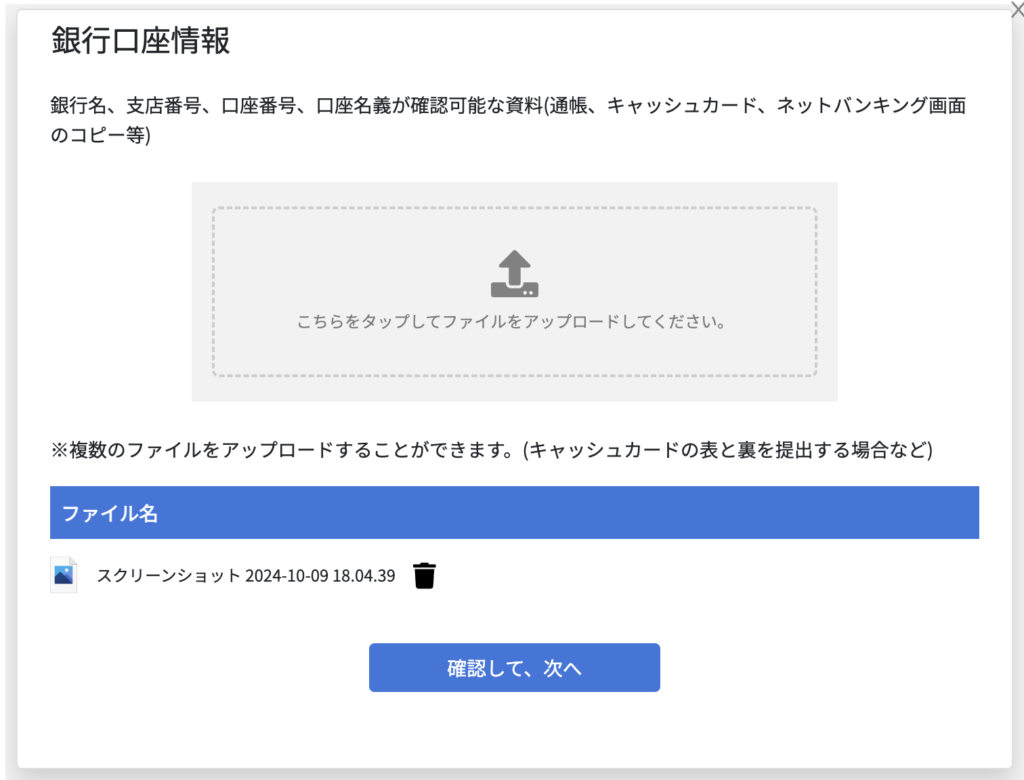 その後承認されたらマイページから銀行口座情報を登録します。