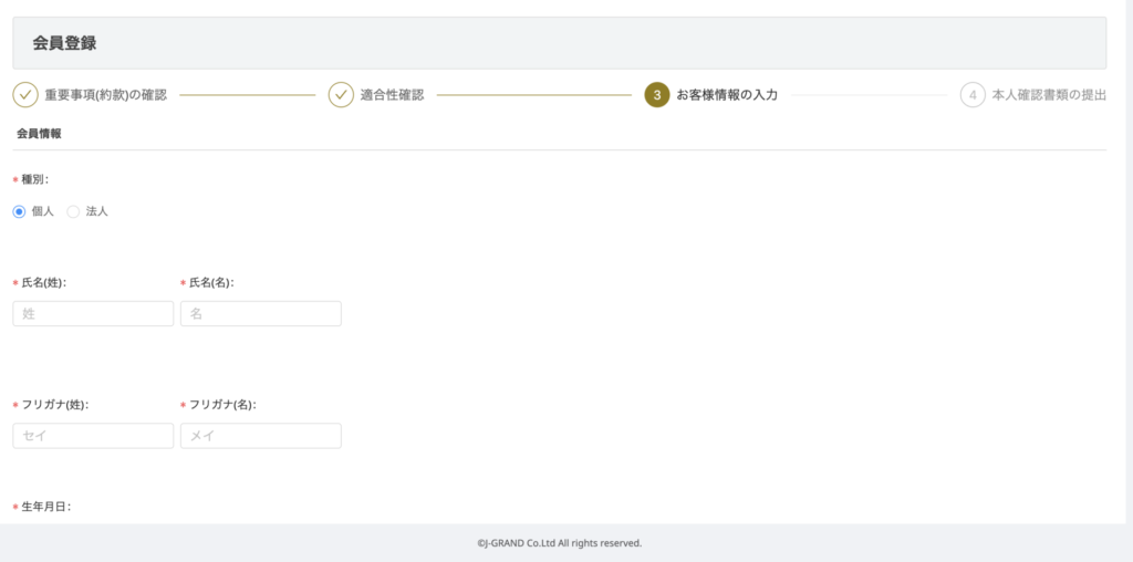 名前や生年月日などの個人情報を入力していきます。