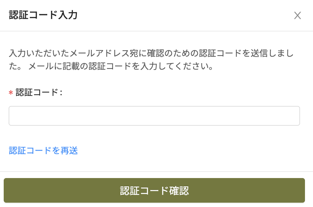 入力したメールアドレスに認証コードが送られてきます。