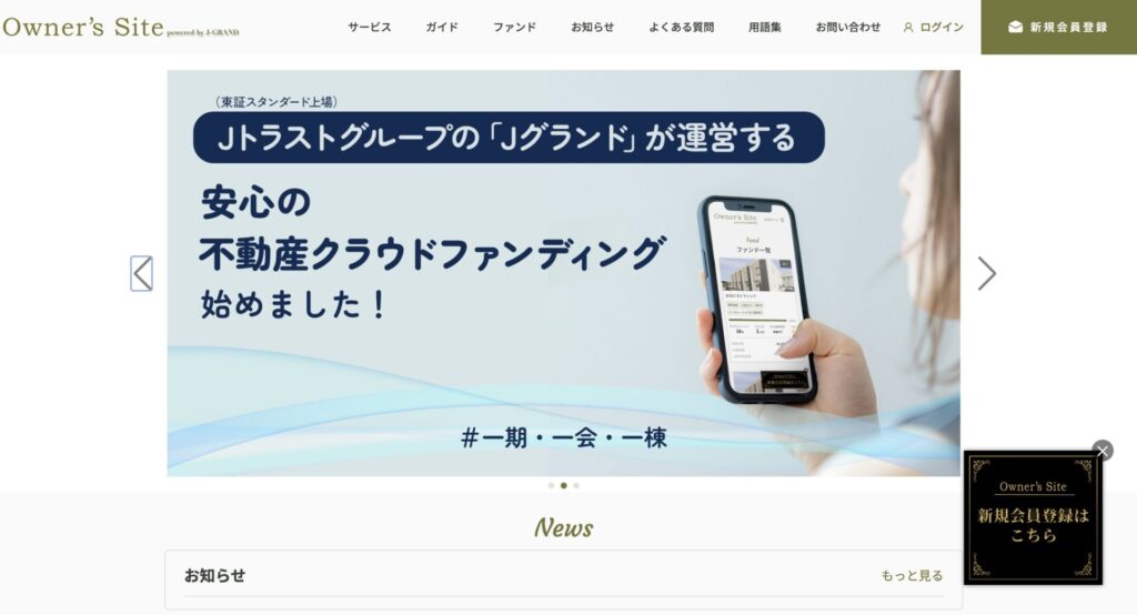Owner’s siteはJトラストグループJグランド株式会社が運営する不動産クラウドファンディングです。