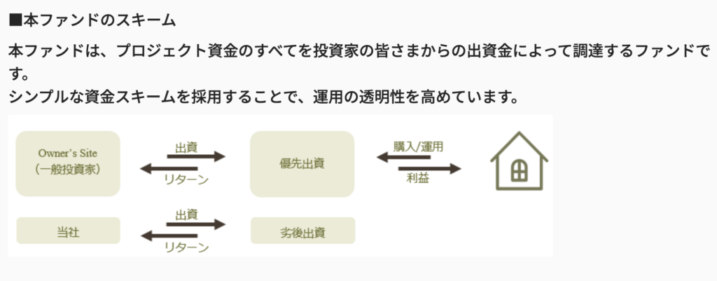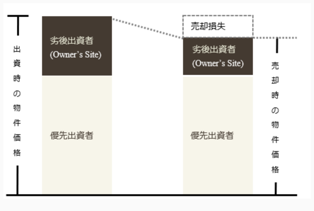 何か問題があり投資物件価値が減少した場合「劣後出資者(運営)」が先に損失を被り、その後に「優先出資者(個人投資家)」が損失を受ける仕組みです。