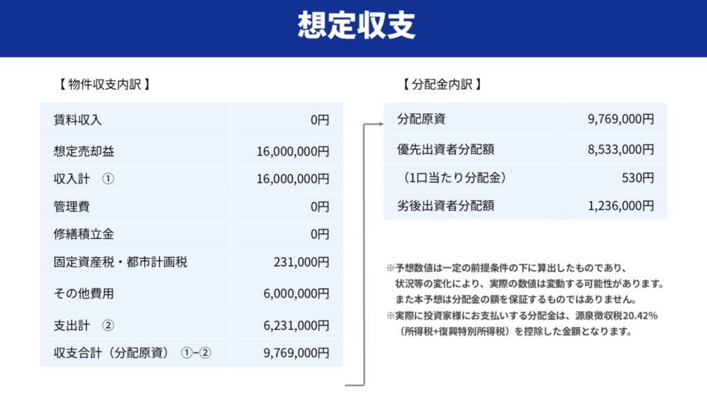 となっており、対象不動産償還に必要な取得費用は確保済みとのこと。