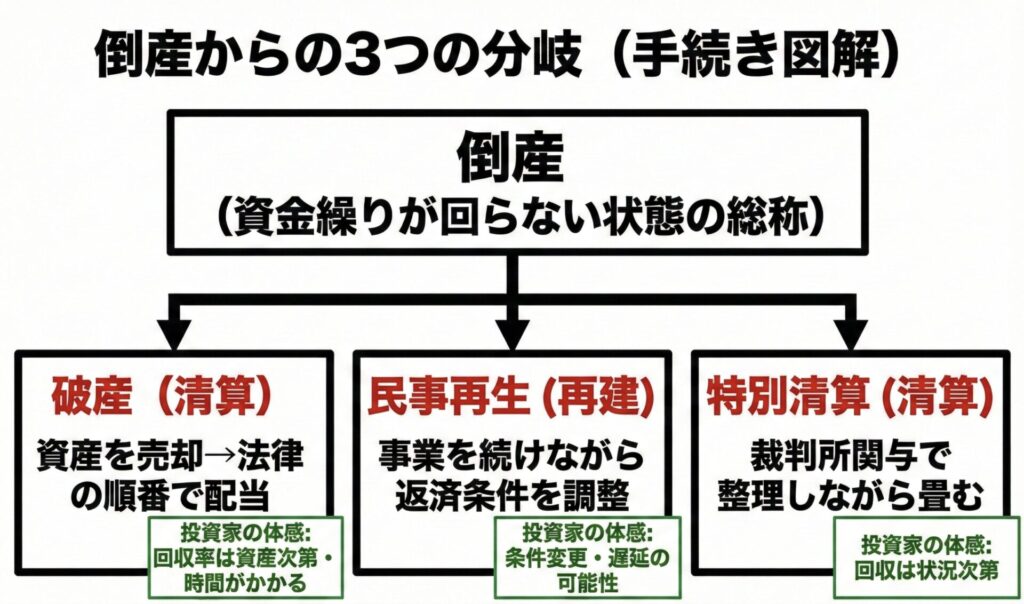 ・倒産/破産/民事再生:用語の整理(何が起きるかが変わる)