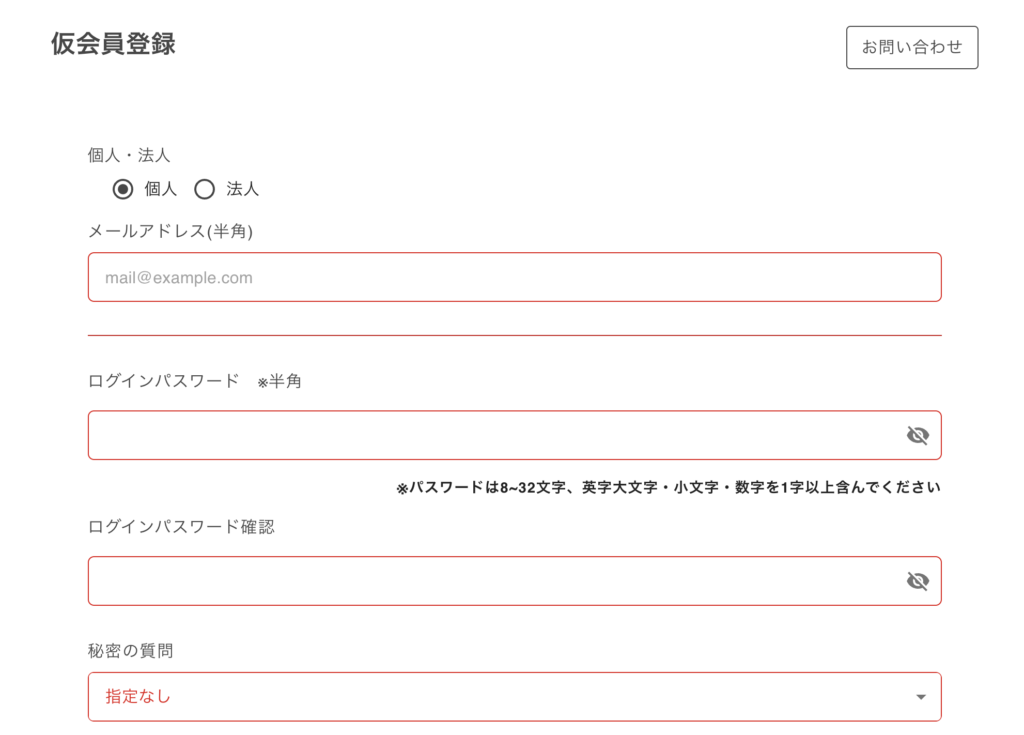 メールアドレスとパスワード、秘密の質問を入力します。