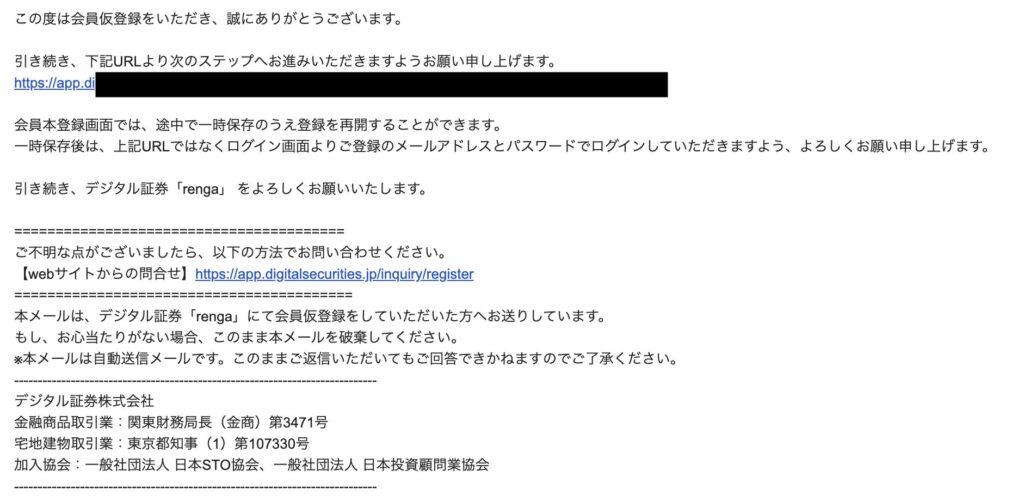 先ほど入力したメールアドレスに本会員登録URLが届くので、そちらから再度ログインします。