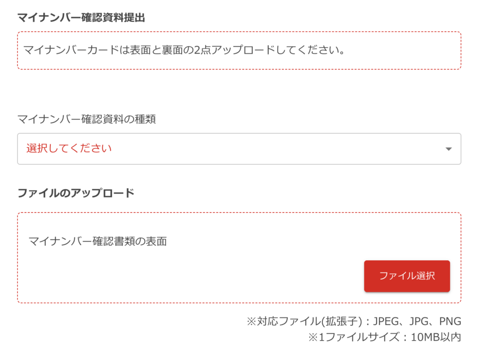 マイナンバーカード確認資料の提出を行ってください。