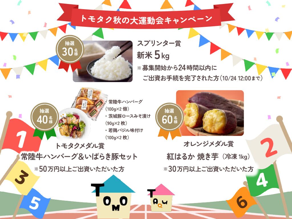 *登録から2ヶ月以内に出資が必要報酬:TOMOTAQUポイント5000P→10/31まで7000Pに増量中です!